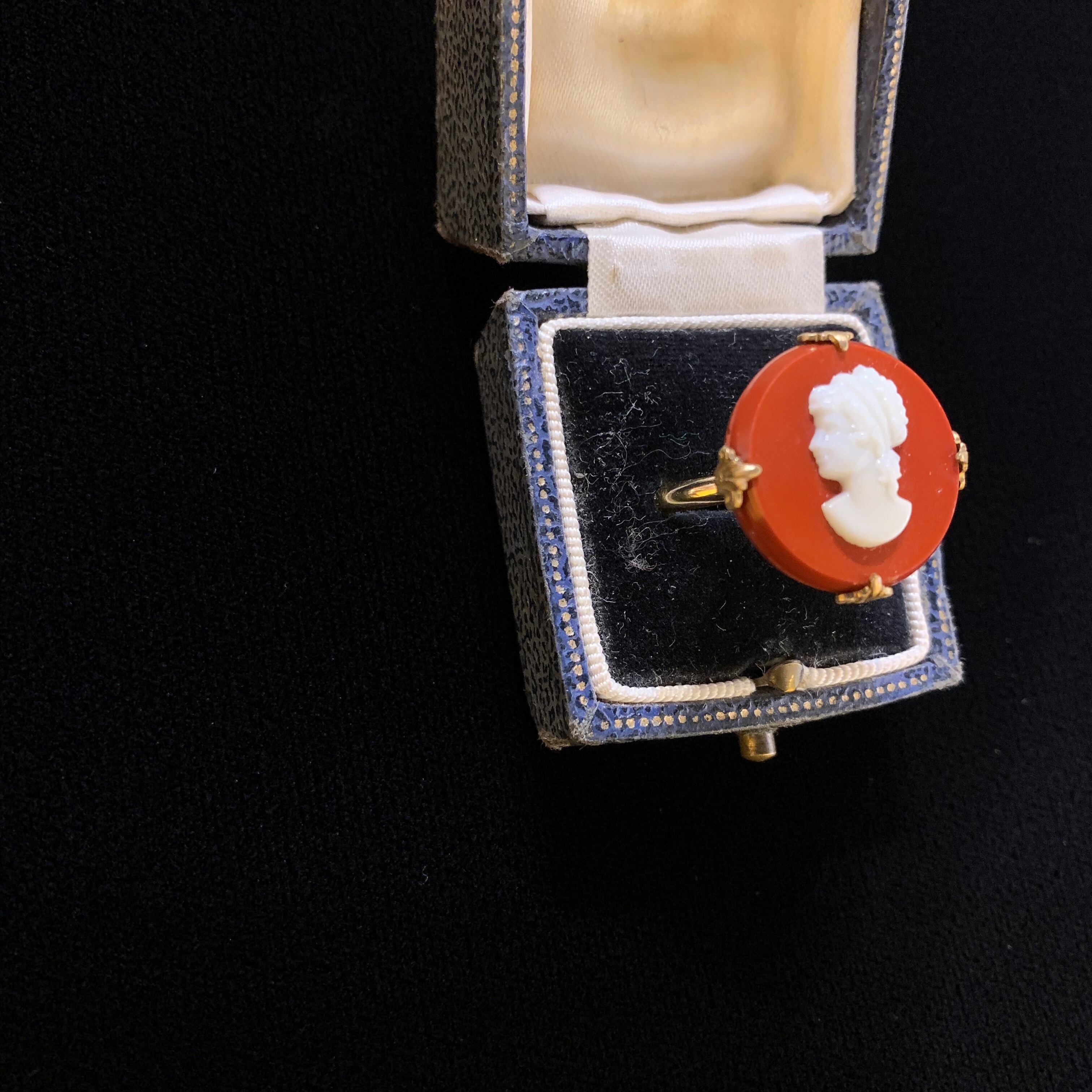 煉瓦色がイマドキなカメオのリング。