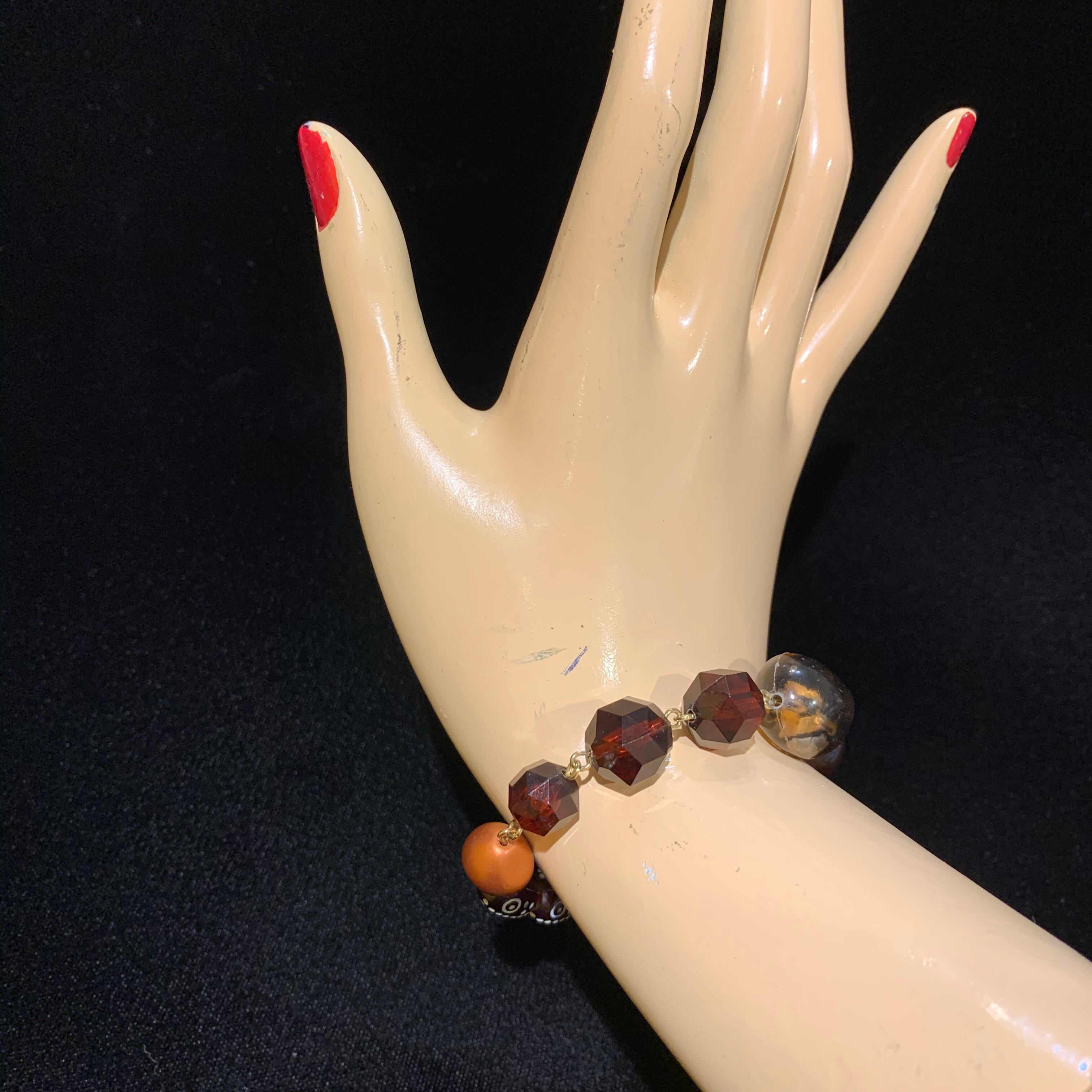フランス製のビーズを繋げた、ブラウンのワントーンブレスレット。
