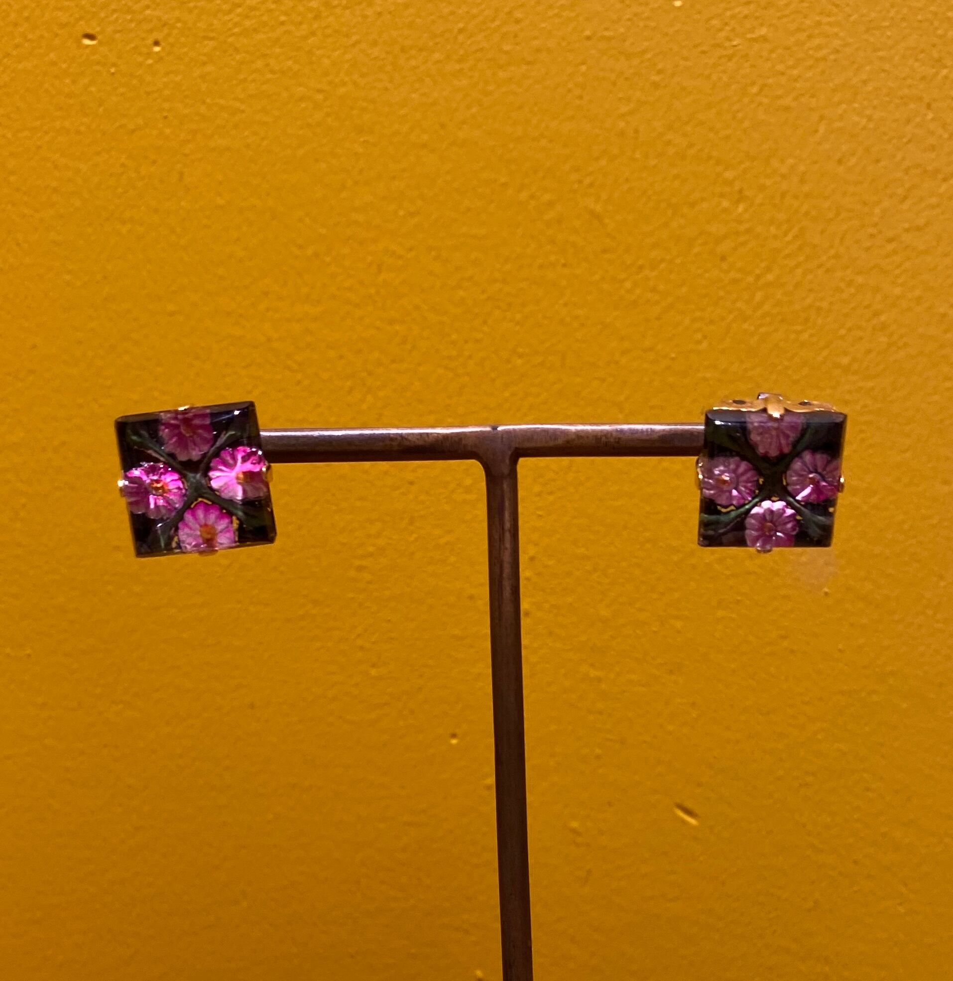 ピンクのお花が愛らしいピアス。