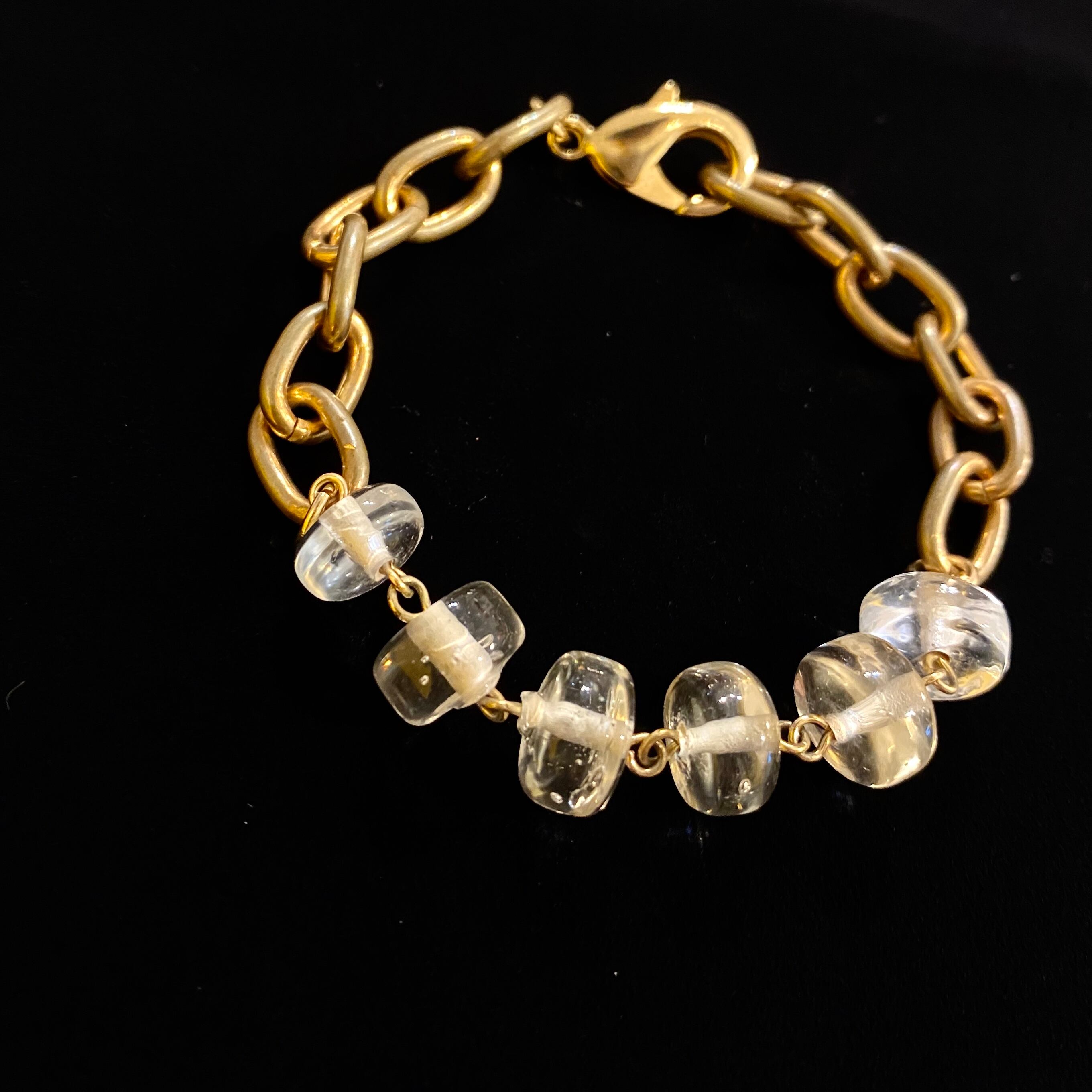 ガラスのコインビーズは、ひとつひとつ手作り。
