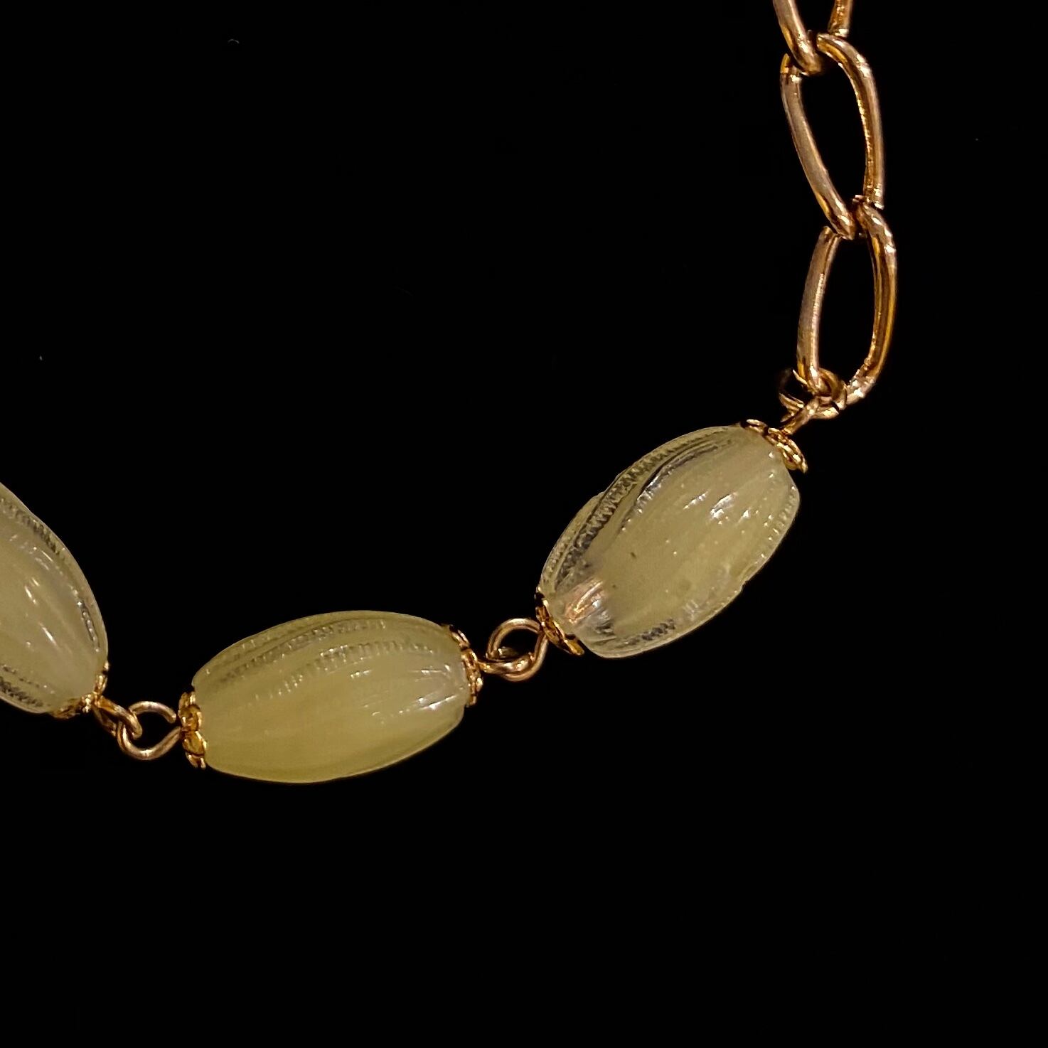 レモンキャンディを思わせるビーズは、色ムラさえ魅力です。