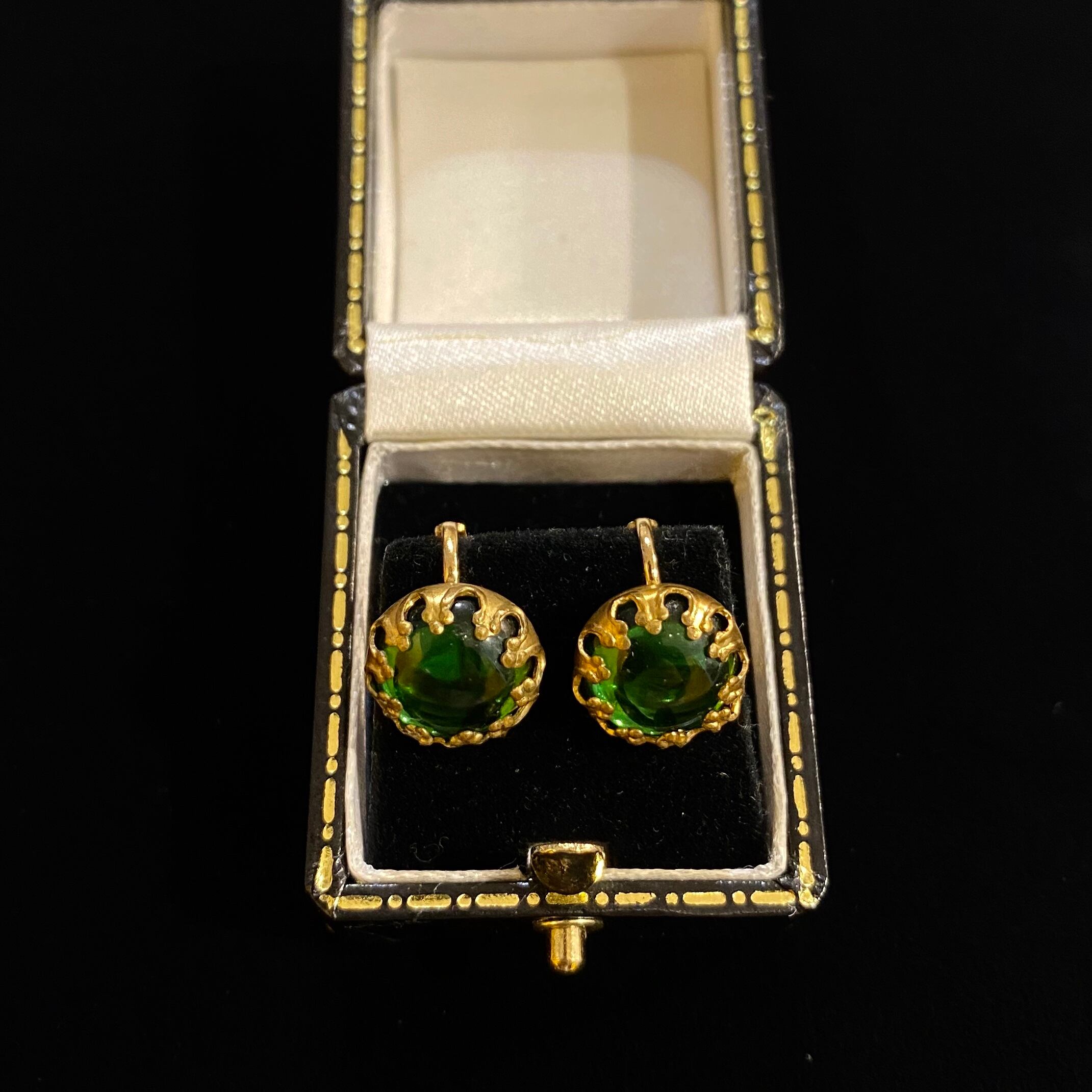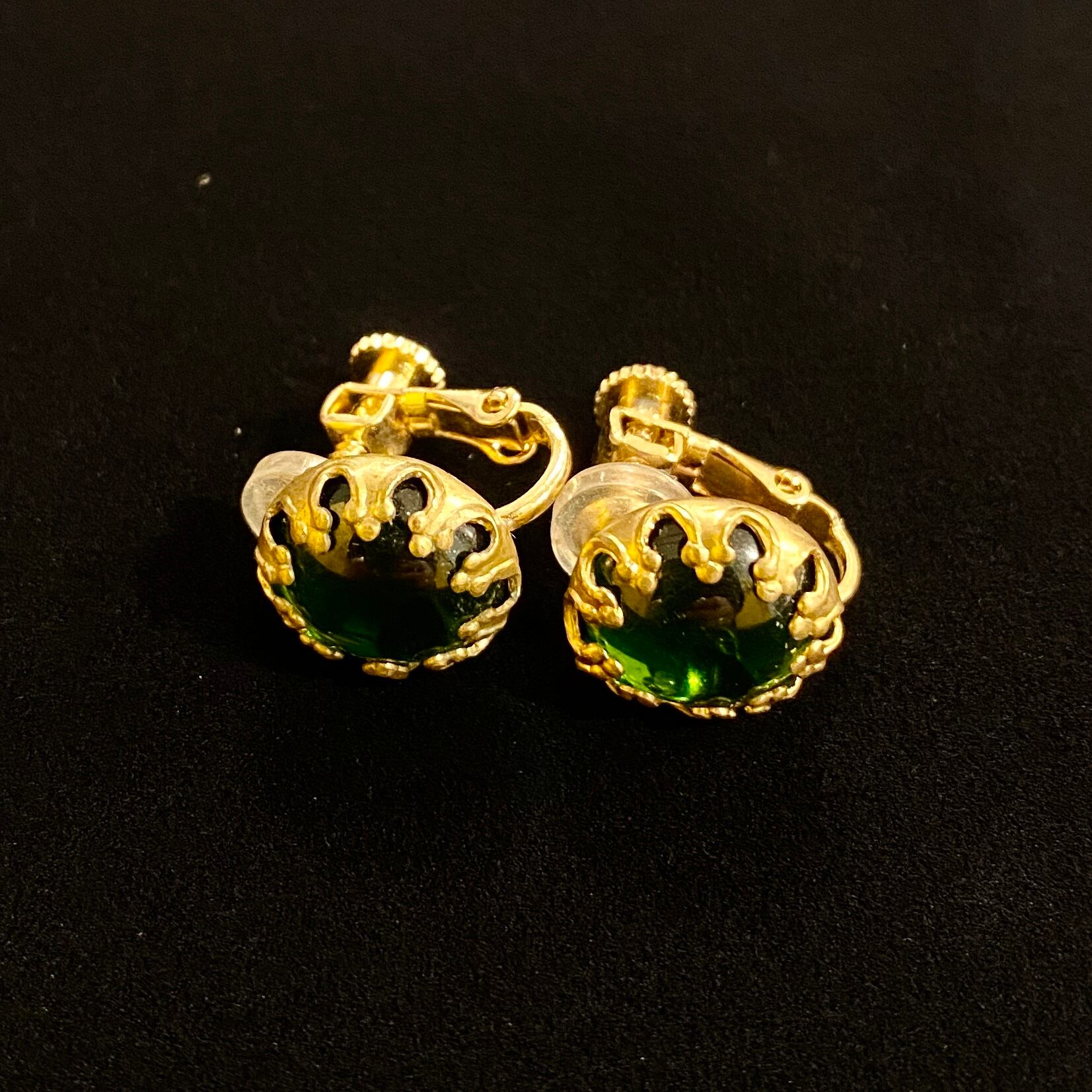 素材 : パーツ ガラス / 枠 真鍮 / イヤリング 合金
