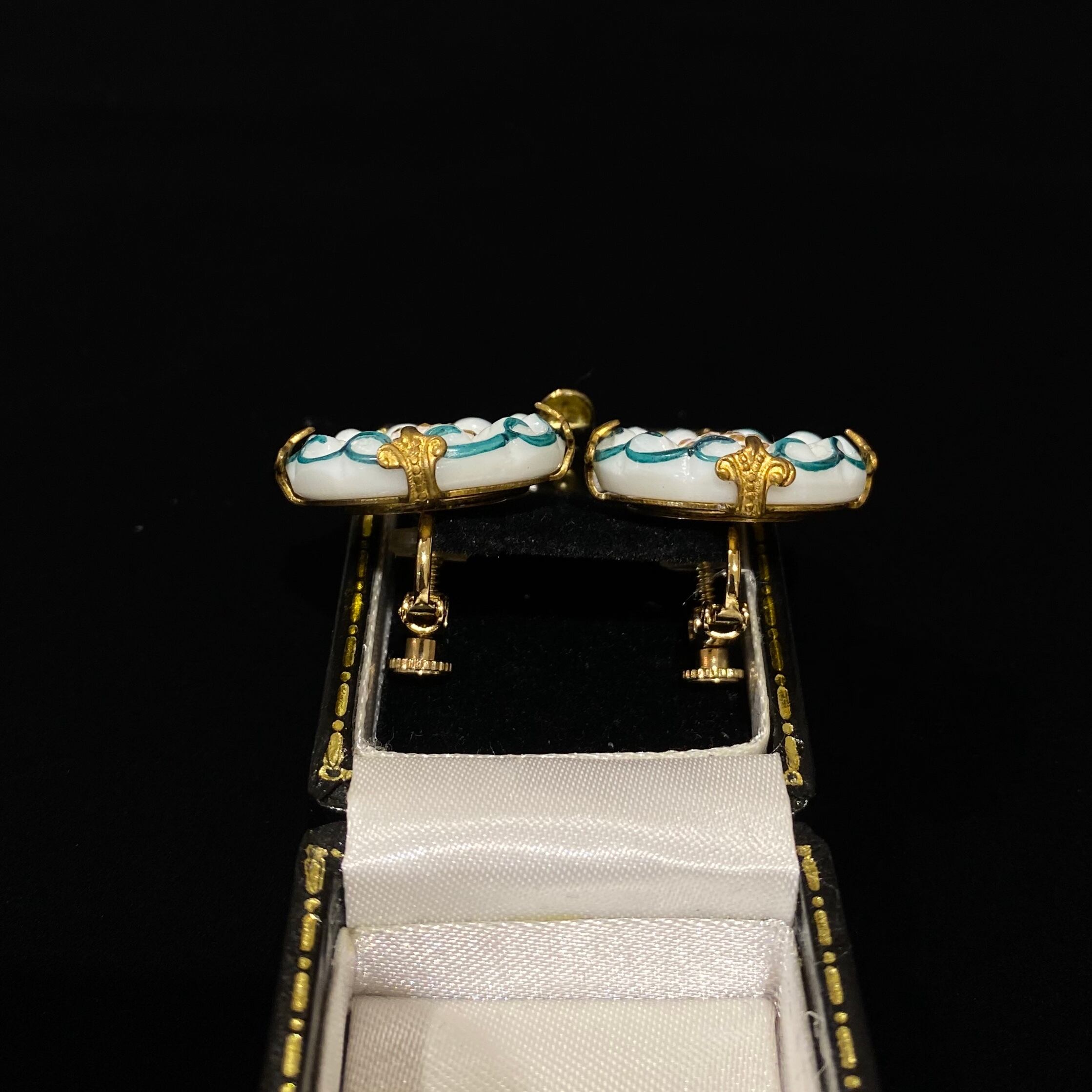 素材 : パーツ ガラス / 枠 真鍮 / イヤリング 合金