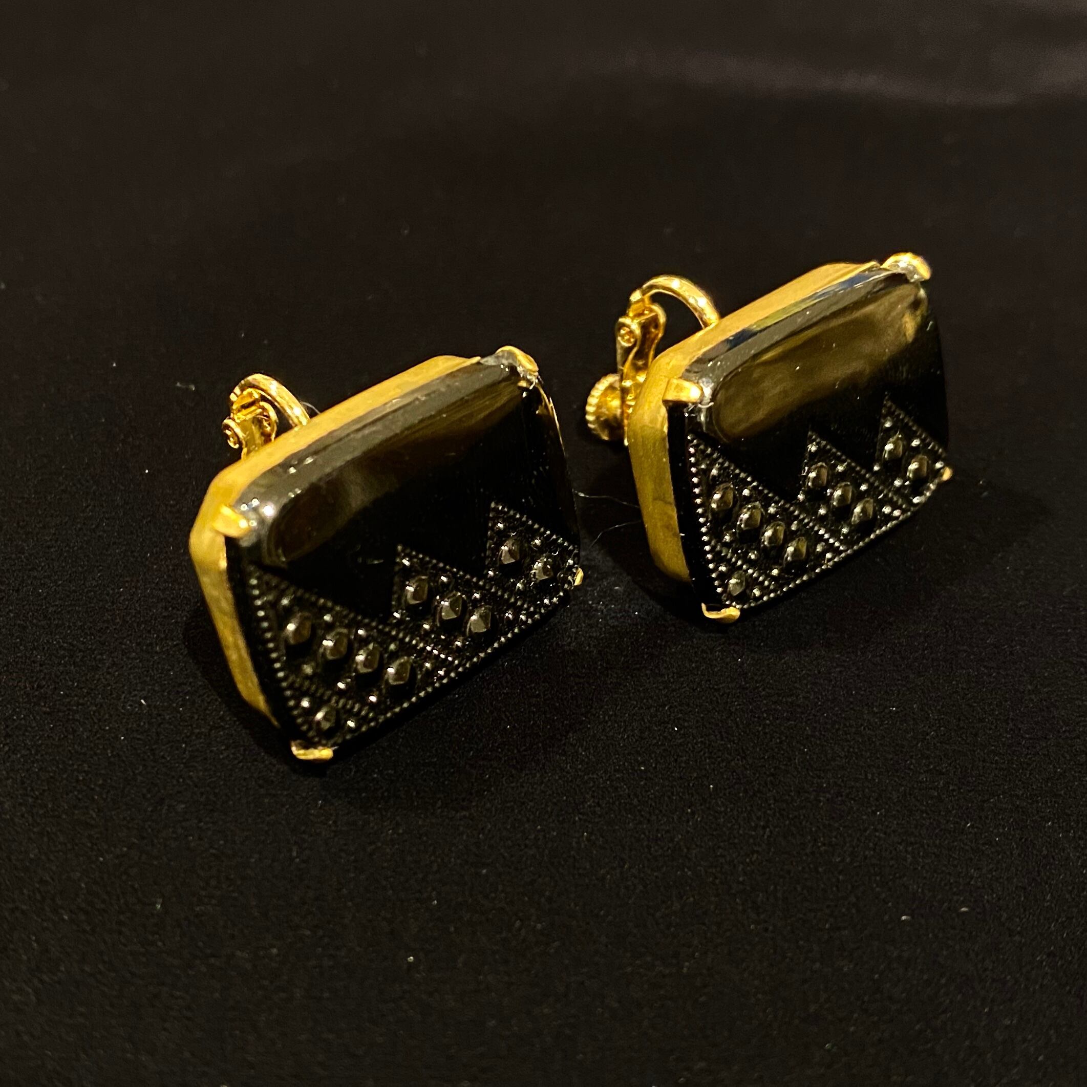素材 : パーツ ガラス / 枠 真鍮 / イヤリング 合金