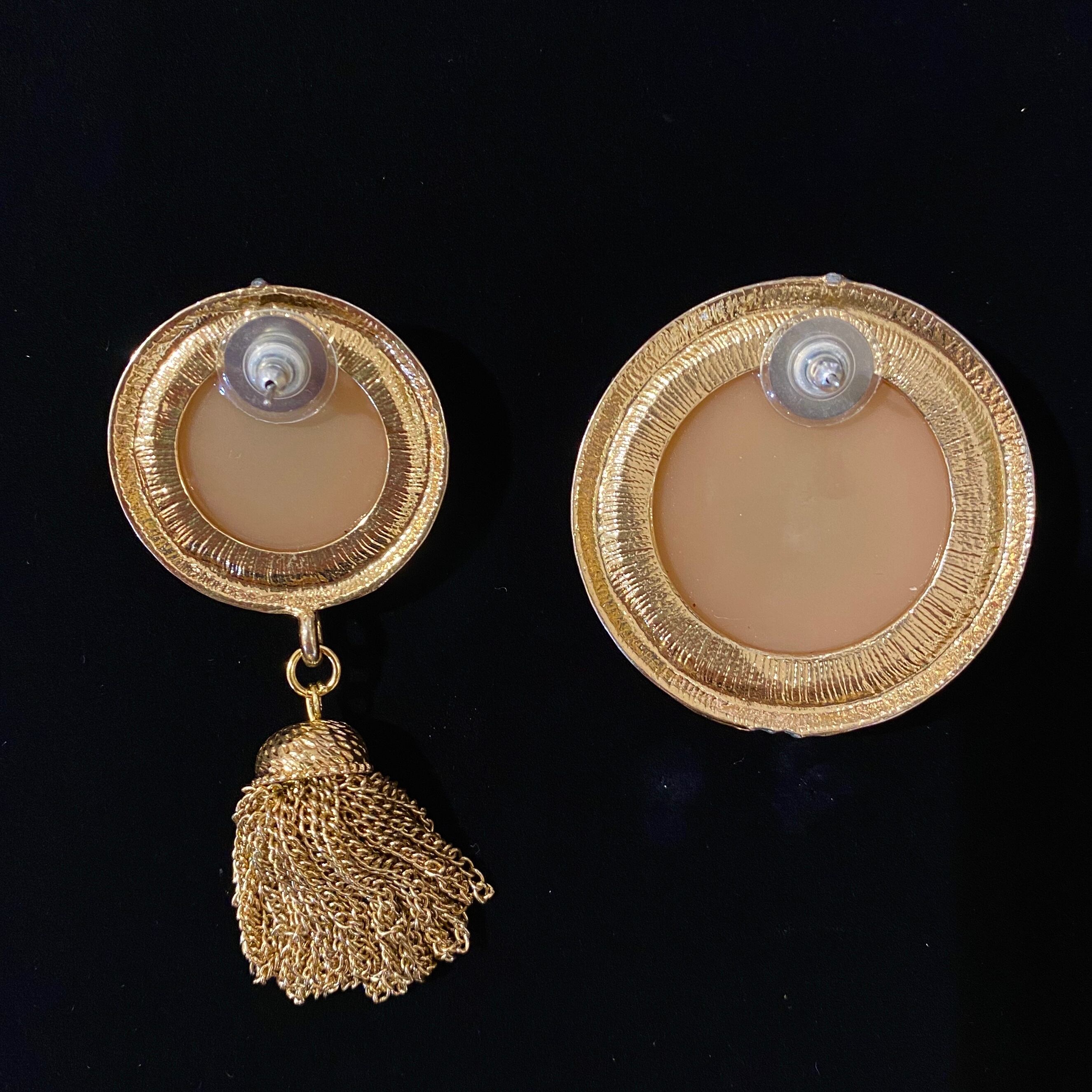 大きさ違いのオレンジ色の丸に、チェーンのタッセル!