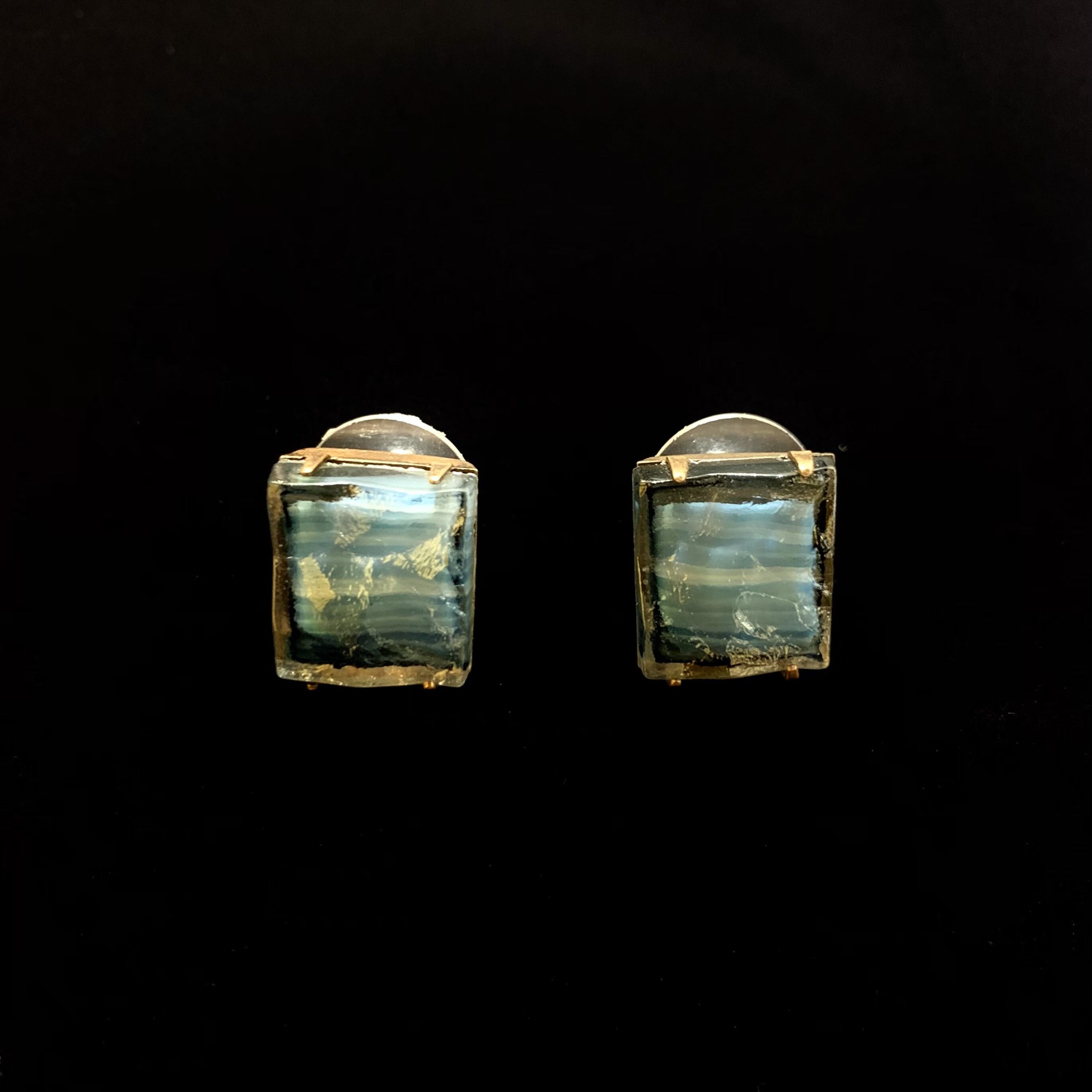 素材 : パーツ ガラス / 枠 真鍮 / ピアスポスト サージカルステンレス