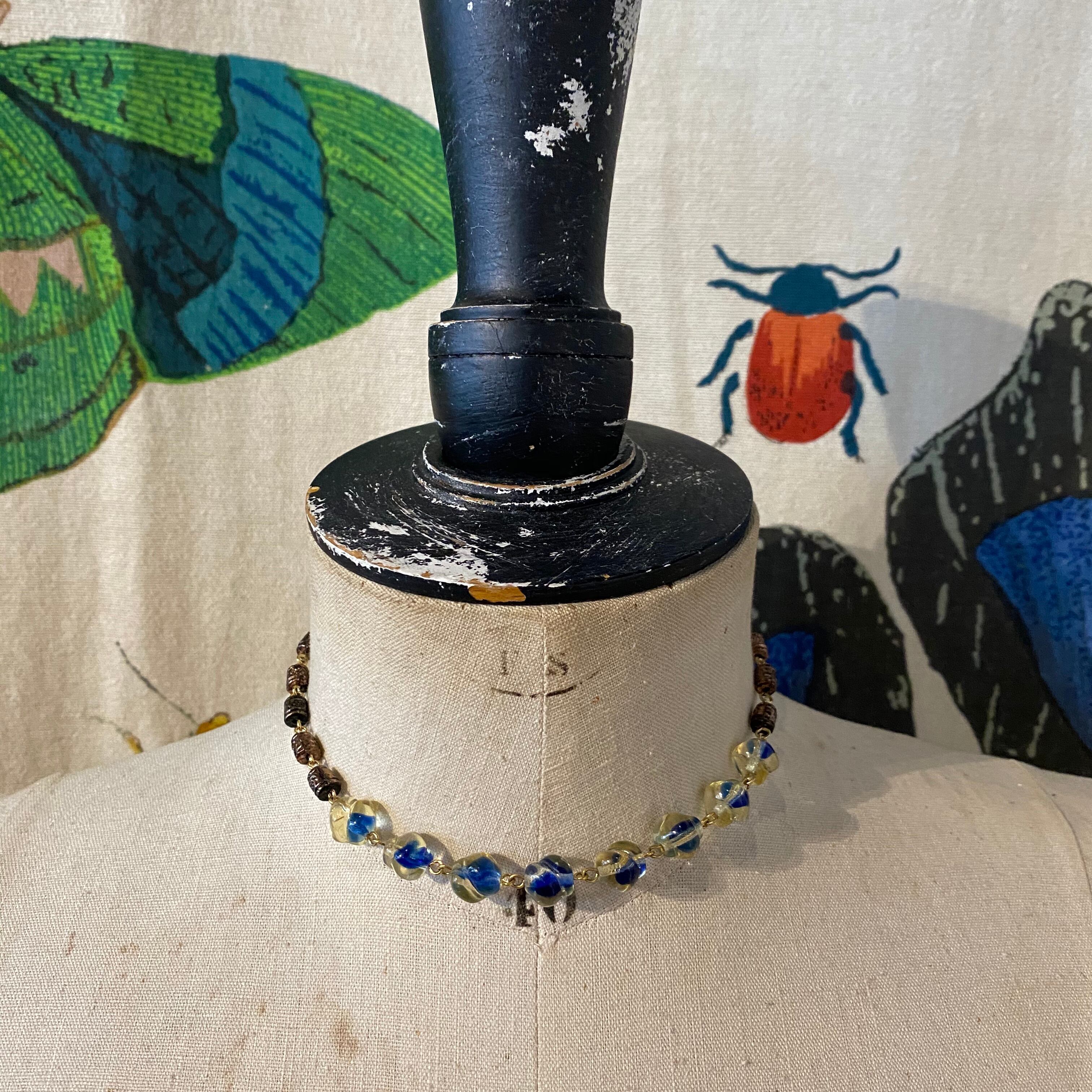 コッパーカラーのチューブと合わせてネックレスに仕立てました。