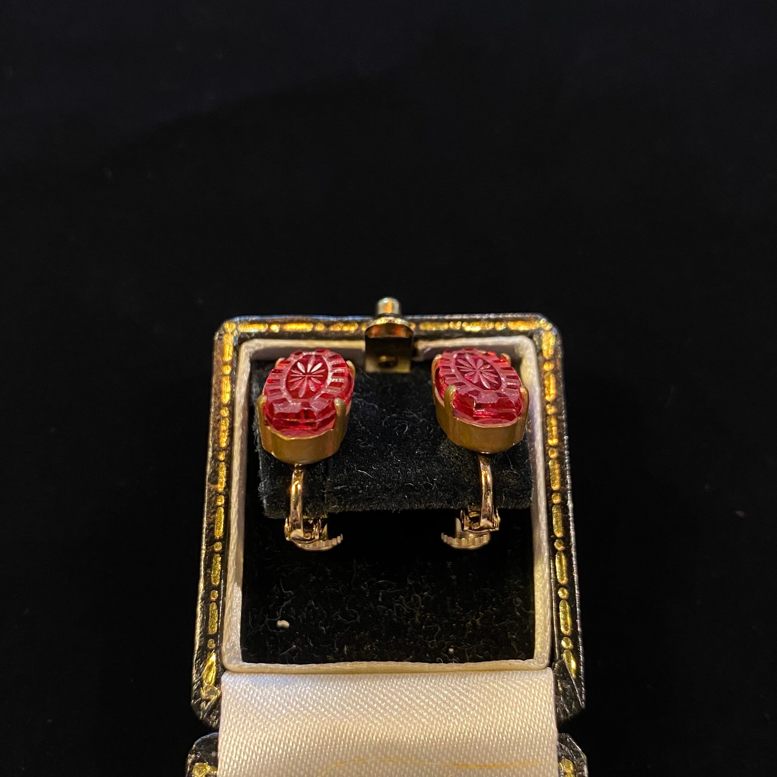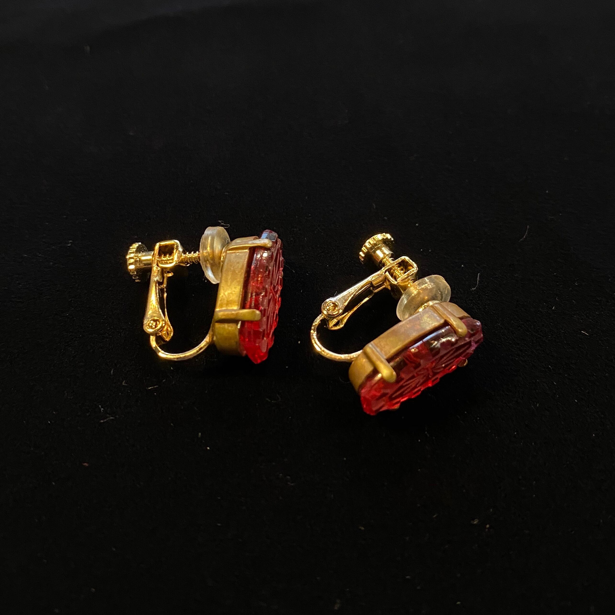 素材 : パーツ ガラス / 枠 真鍮 / イヤリング 合金