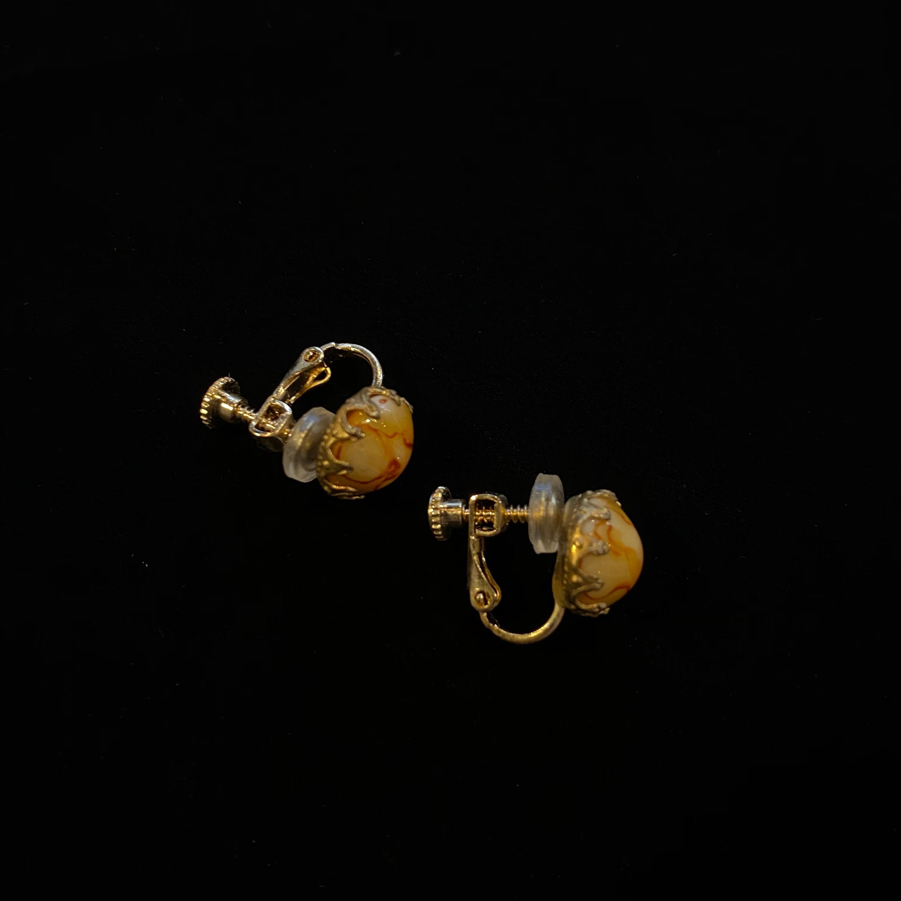 卵色のベースにオレンジのラインが愛らしいイヤリング。