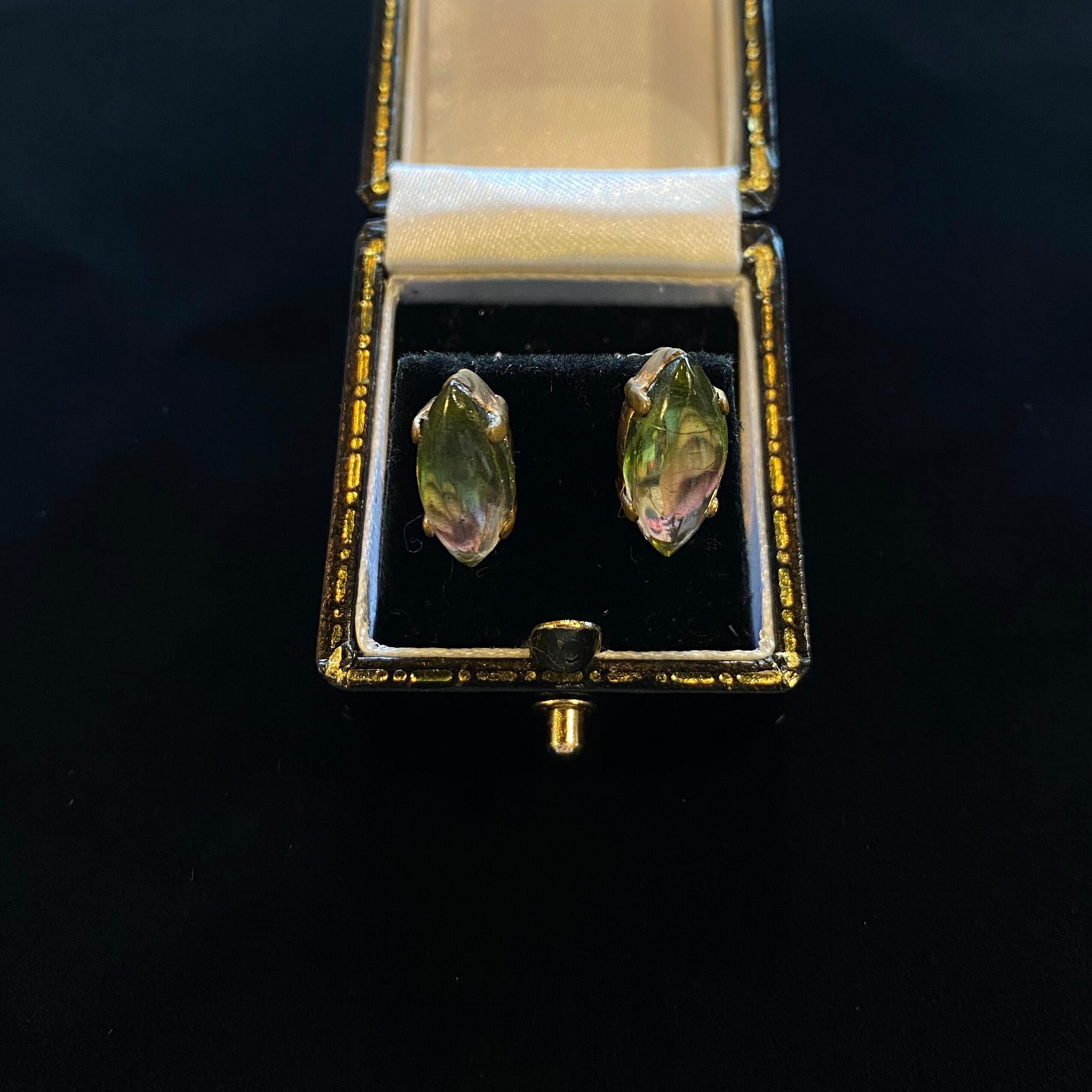 素材 : パーツ ガラス / 枠 真鍮 / ピアスポスト サージカルステンレス