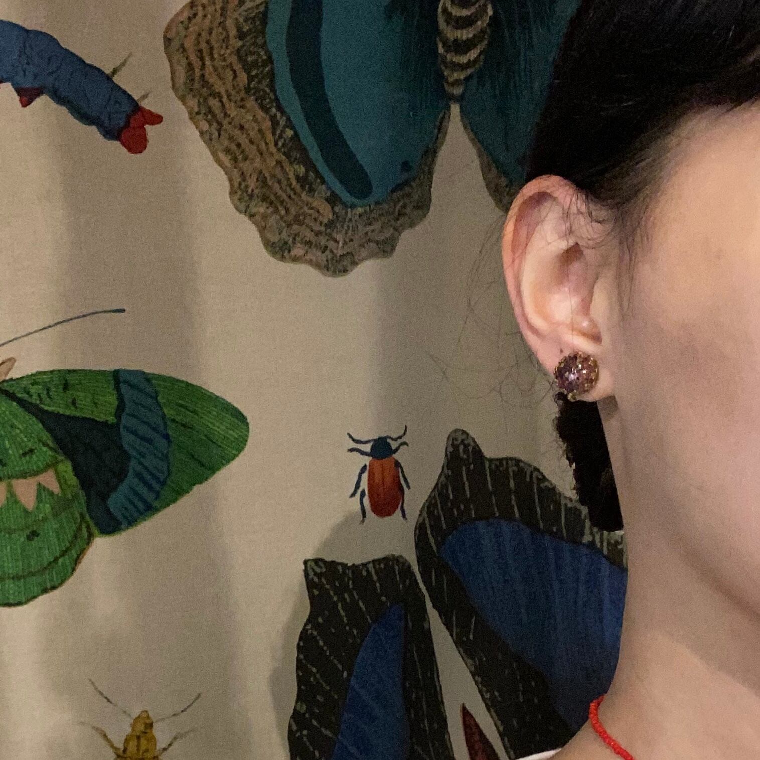 でもベースは落ち着いたあずき色の、大人可愛いイヤリングです。