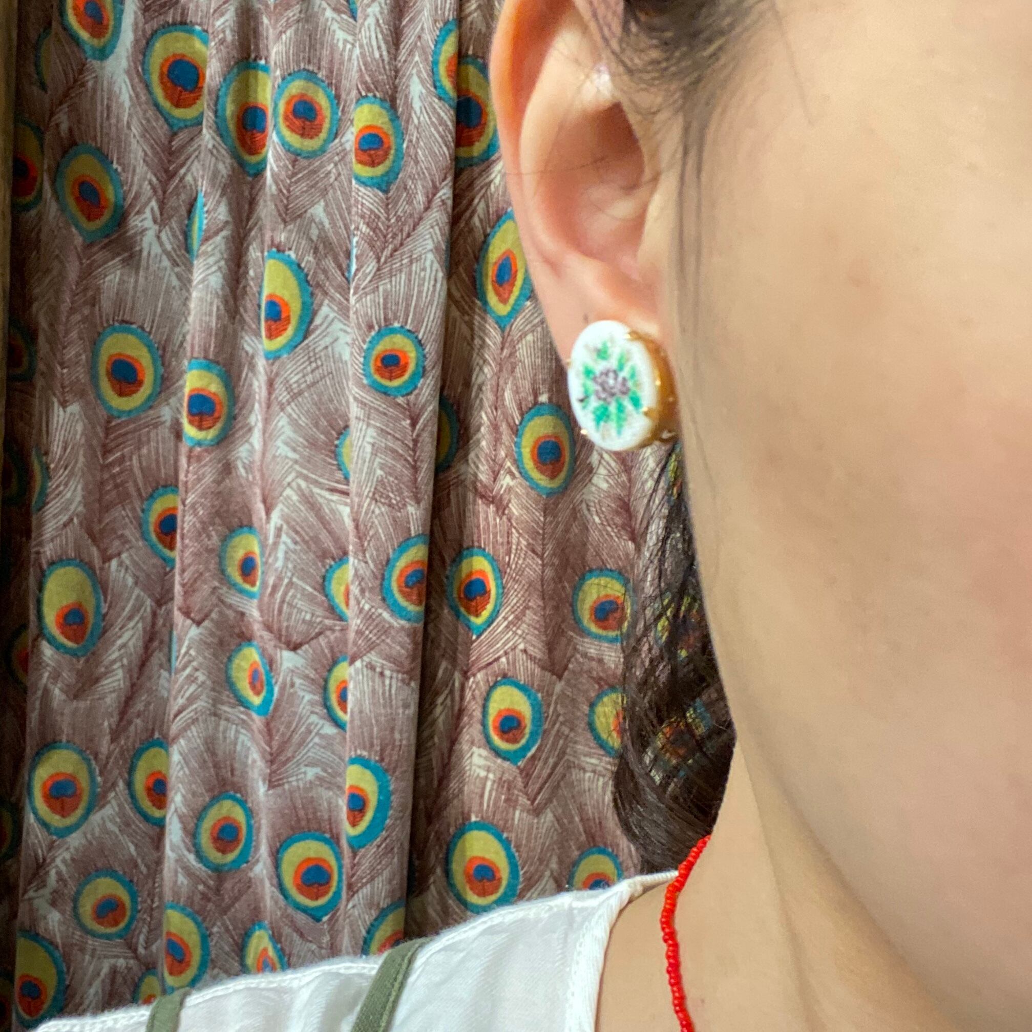 素材 : パーツ ガラス / 枠 真鍮 / ピアスポスト サージカルステンレス