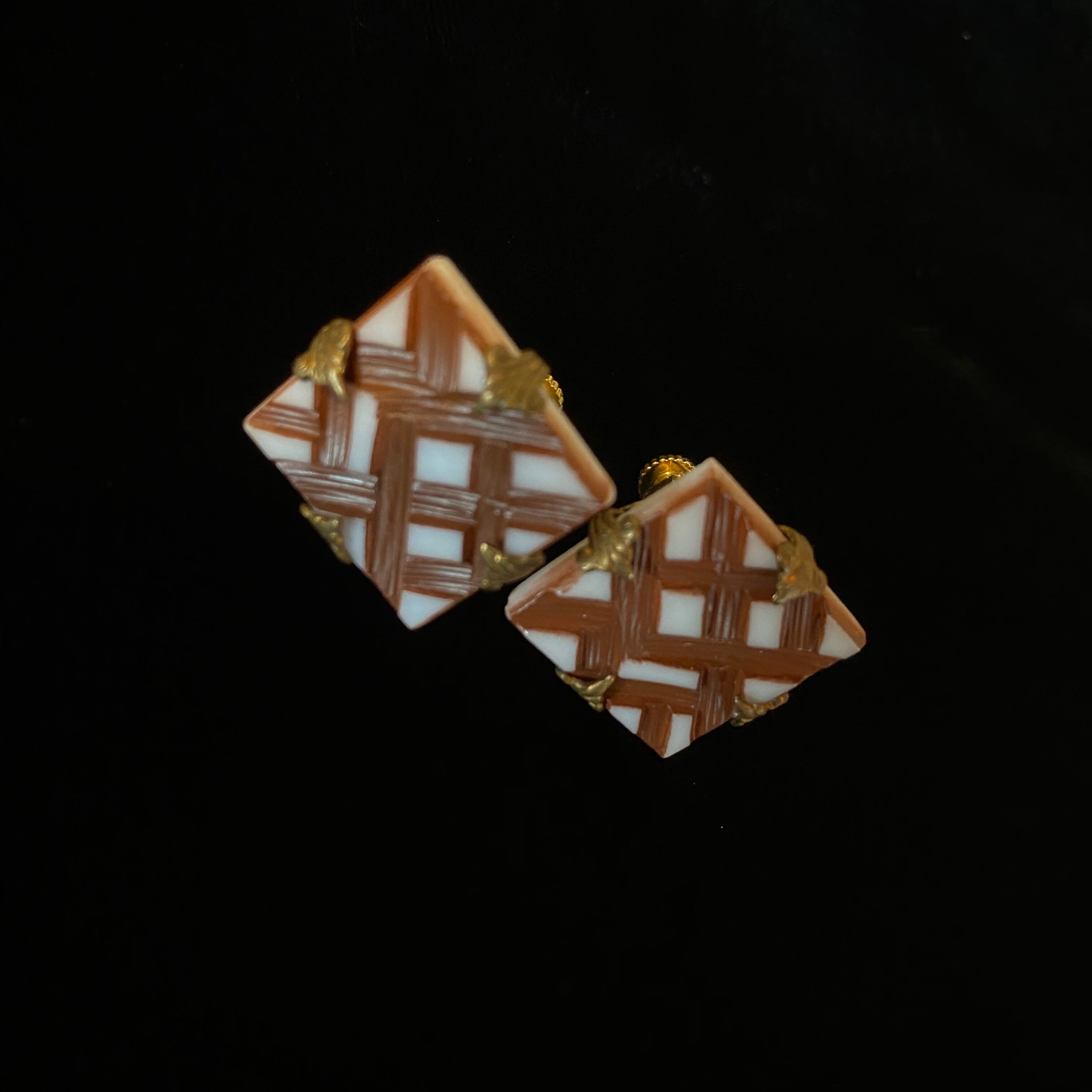 素材 : パーツ ガラス / 枠 真鍮 / イヤリング 合金