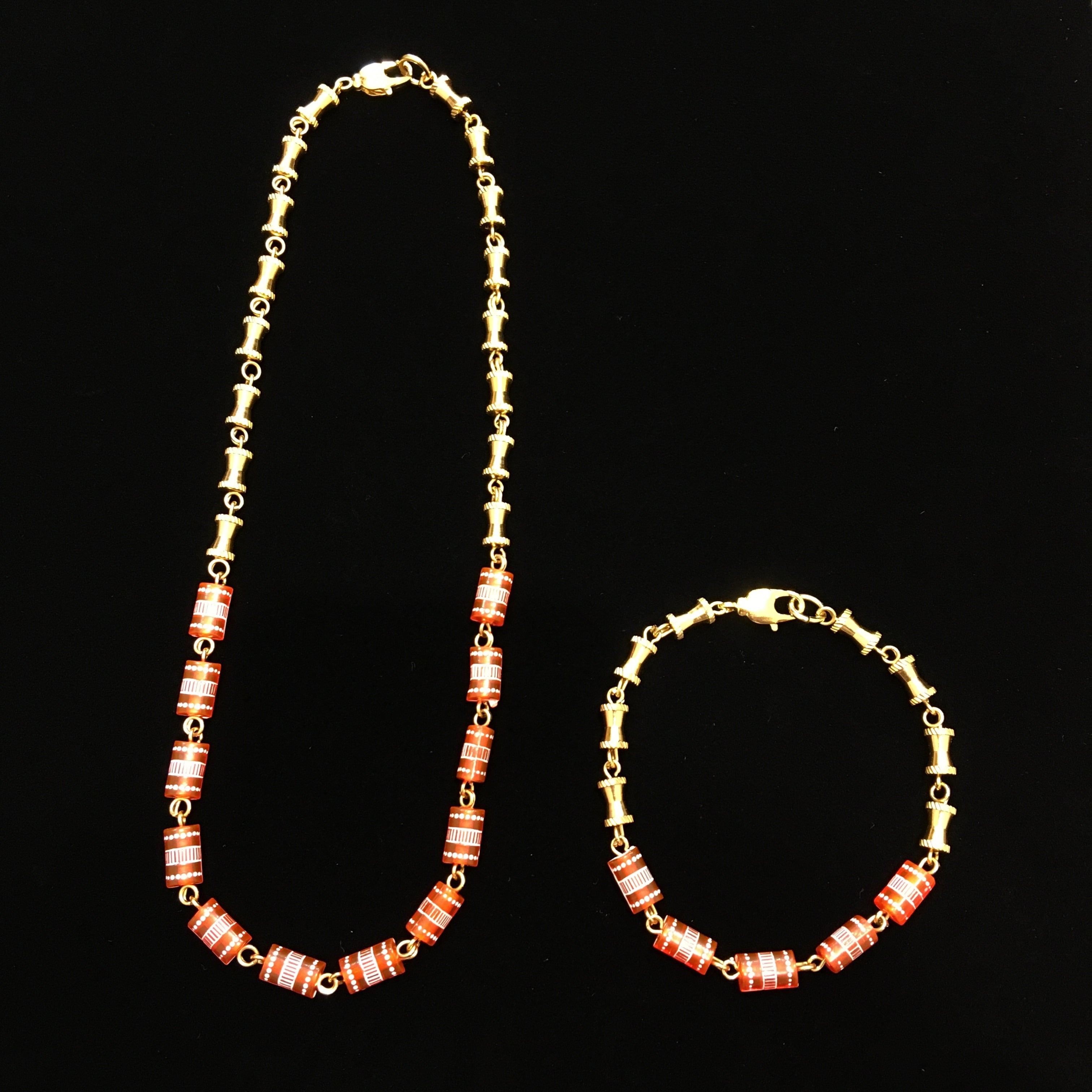 ゴールドチューブビーズと合わせて、シックなネックレスに仕立てました。