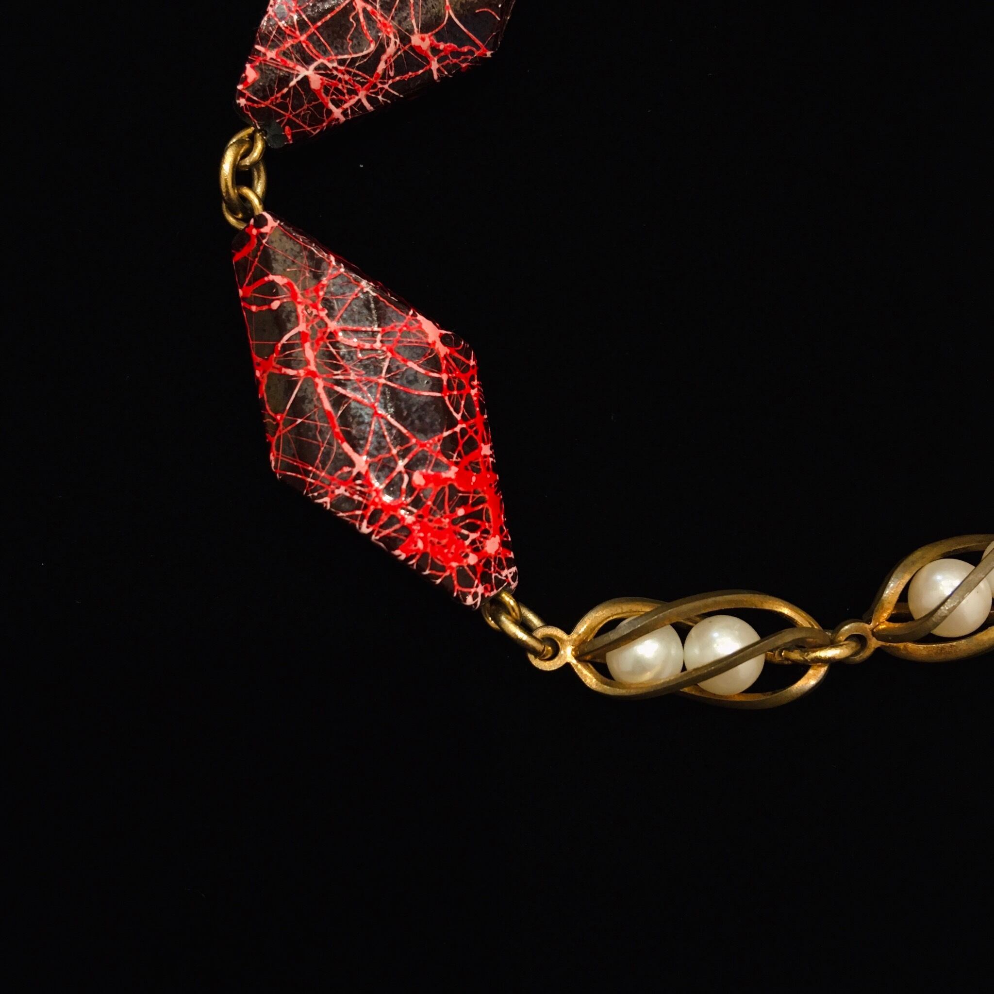 パールを閉じ込めた真鍮のパーツもユニークです。
