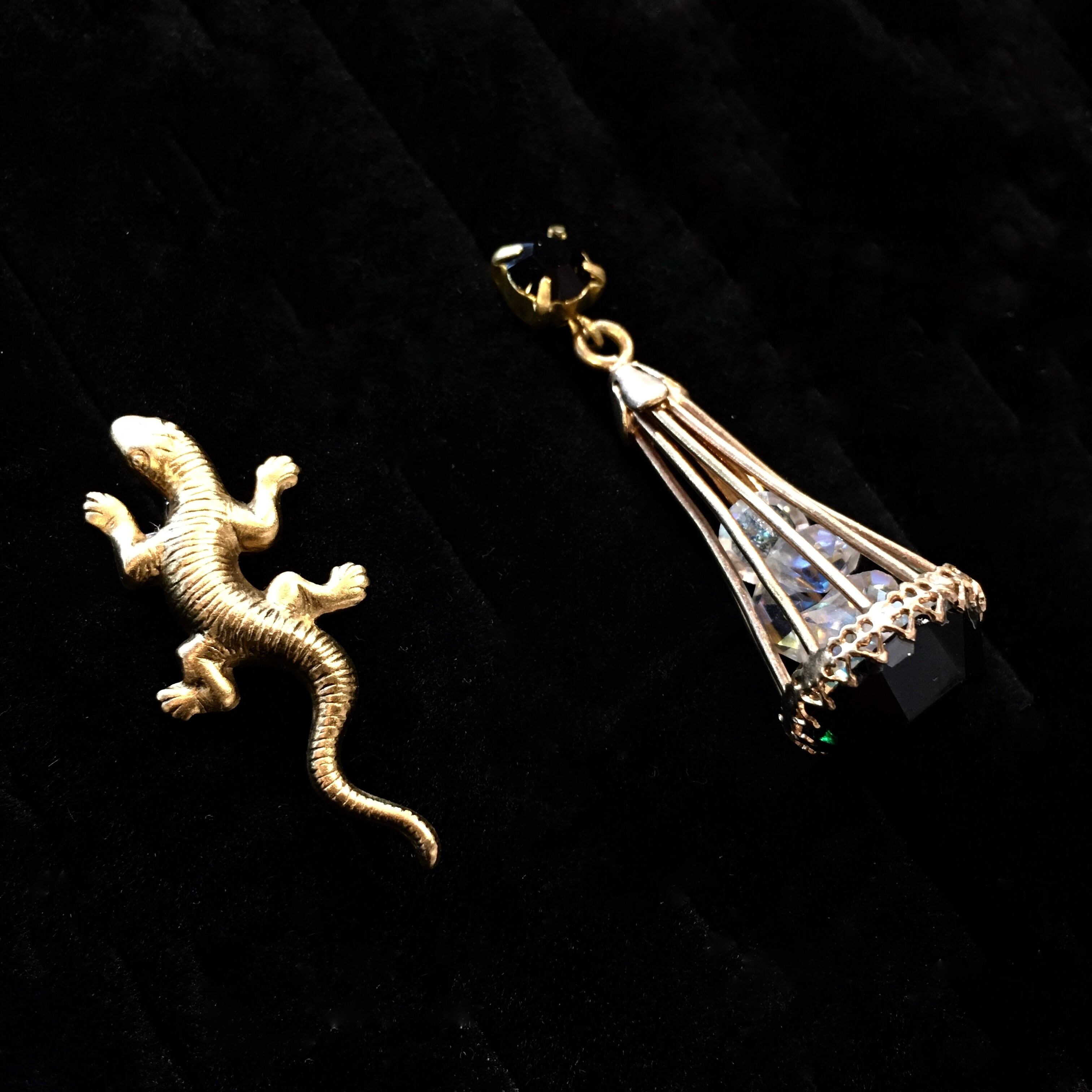 サイズ: トカゲ 全長 3.5cm 幅 1.5cm / ドロップパーツ 全長 4.5cm 幅 1.8cm