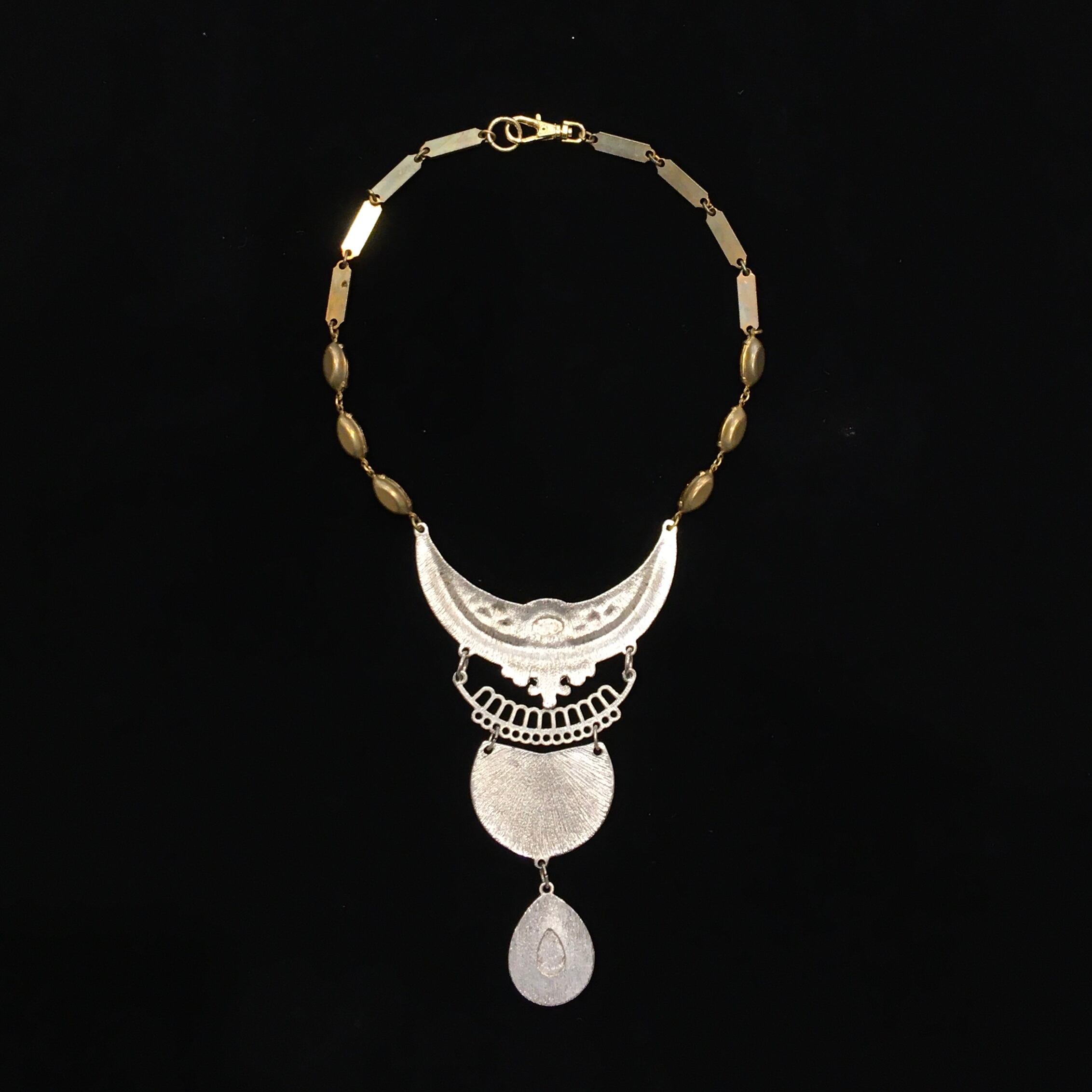 繊細なメタルワークと大胆なデザインのボヘミアンなネックレス。